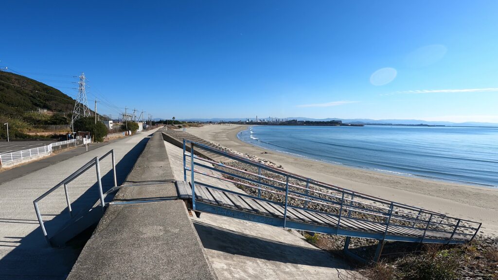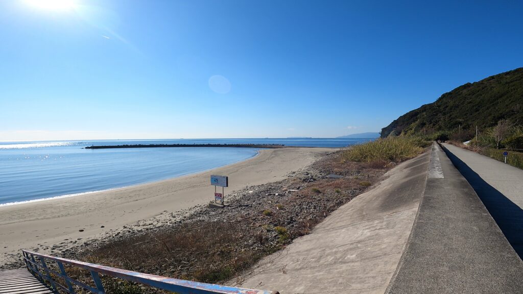 これまでに紹介した雑賀崎漁港や田ノ浦漁港のような「堤防・波止」とは異なり、ここは見渡す限りの砂浜が広がる「サーフ」の釣り場です。