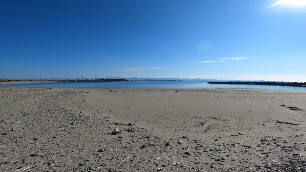 ビーチの大部分を占める砂浜エリア。キスの投げ釣りやフラットフィッシュ狙いのルアーフィッシングのメインステージです。