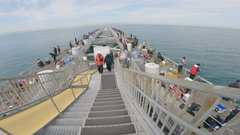 沖に突き出た桟橋で、足元からマダイや青物が狙える!