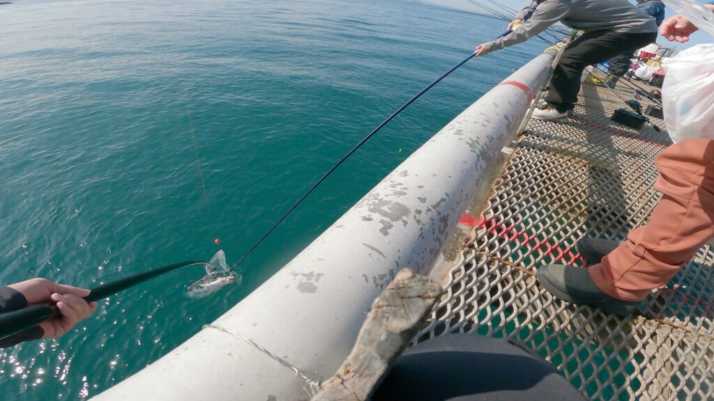 【⚠️注意点】 桟橋の下は網目状のグレーチング(金網)になっている場所があります。小銭やスマホ、釣り針などの小物を落とすとそのまま海へダイブしてしまうので、レジャーシートを敷くなどの対策を強くおすすめします!