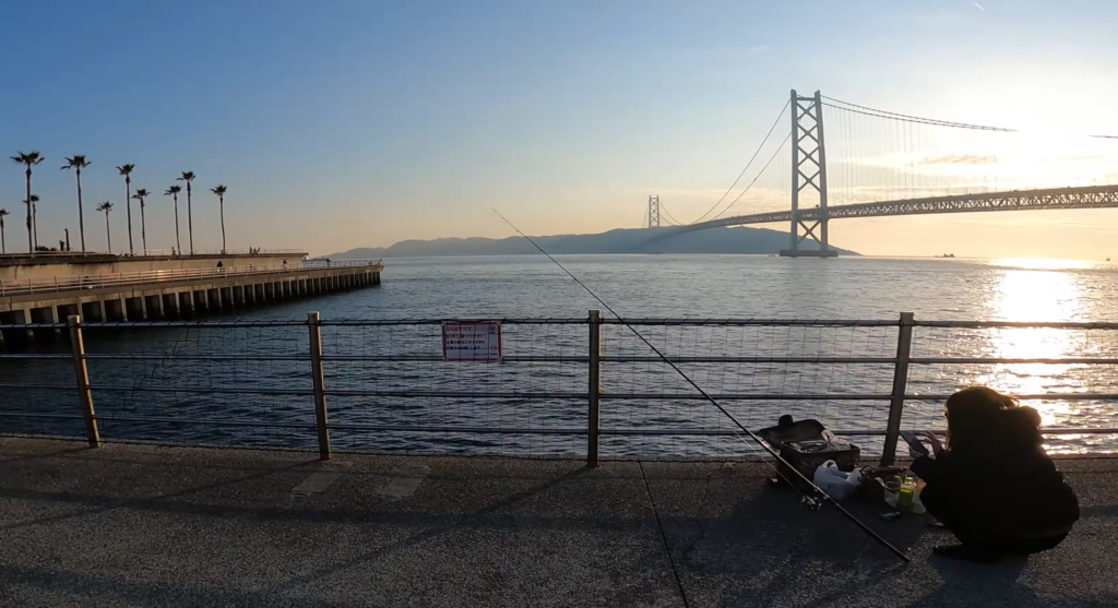 前回の記事で紹介した淡路島・岩屋漁港のちょうど対岸にあたるため、ここも明石海峡の激流の恩恵をダイレクトに受けます。潮通しが抜群に良いため、アジやイワシの回遊が非常に多く、それを追ってハマチなどの大型青物やタチウオが足元まで接岸します。