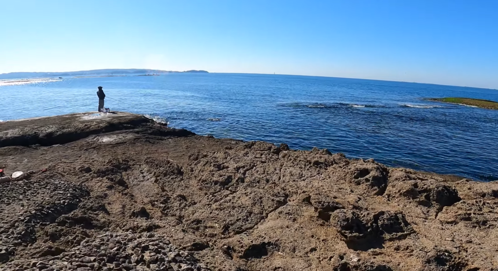 春の攻略の足跡:全体的に水深が浅い岩礁帯(シャローエリア)が広がる、春エギングの超穴場です。産卵を控えた神経質な親イカは、こうした浅くて身を隠せる藻場に執着します。ノーマルのエギではすぐに海藻に引っかかってしまうため、沈下速度の遅い「シャロータイプ」のエギが絶対必須。藻の頭をフワフワと漂わせるように誘うと、岩陰から黒い影が猛烈にアタックしてきます。