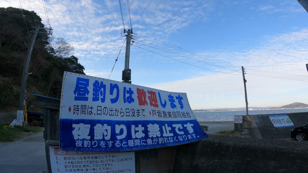戸坂漁港は、近隣住民の方への配慮などから「夜釣り禁止」となっています。釣りができるのは「夜明けから日没まで」です。